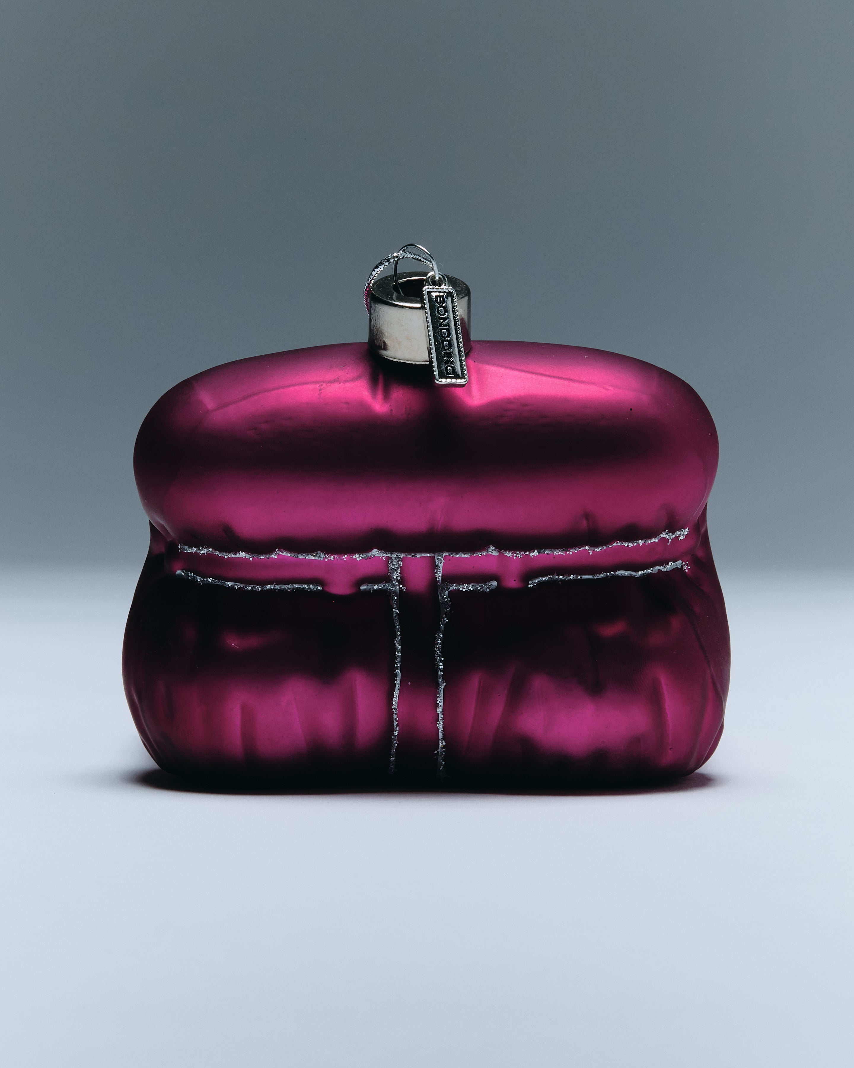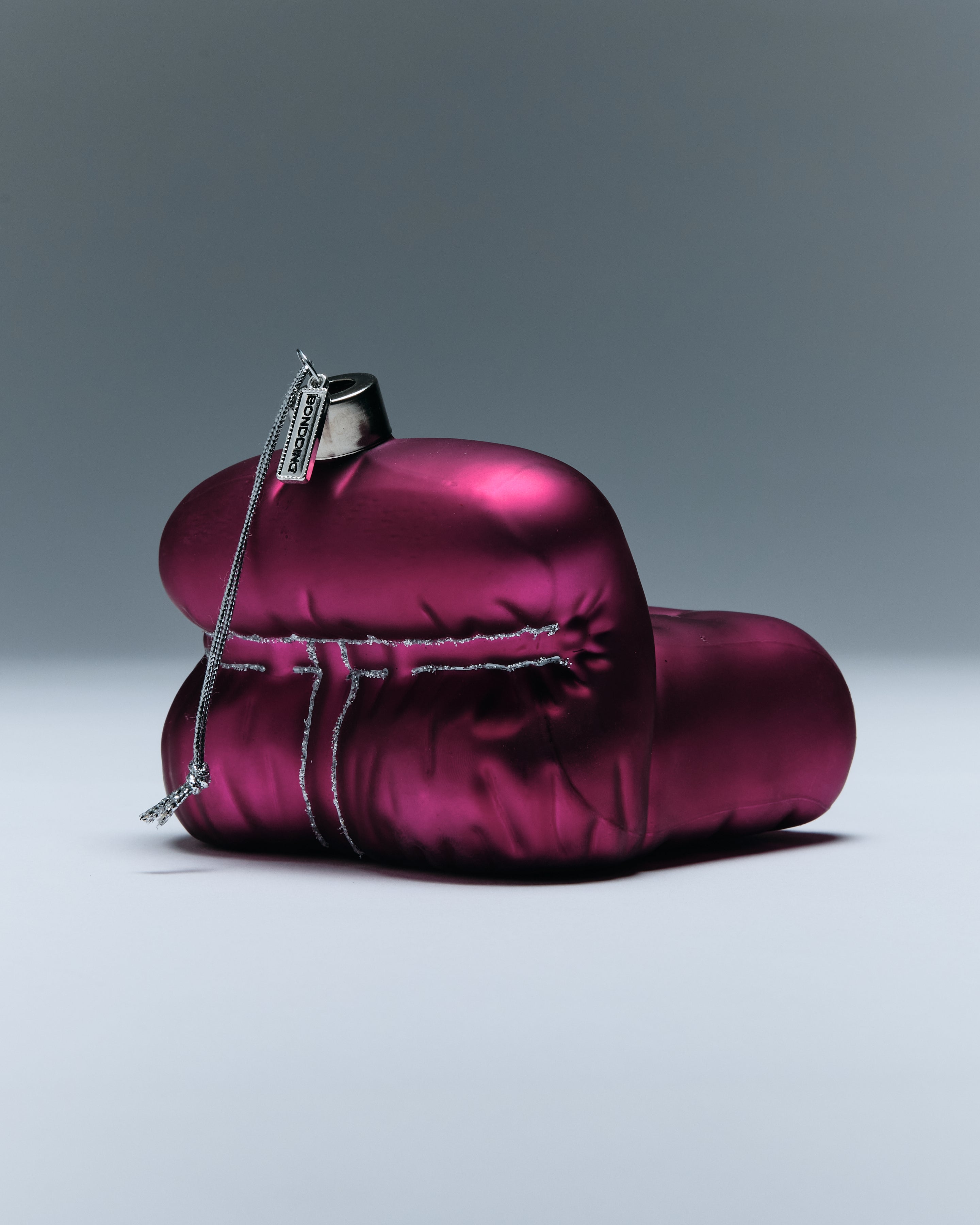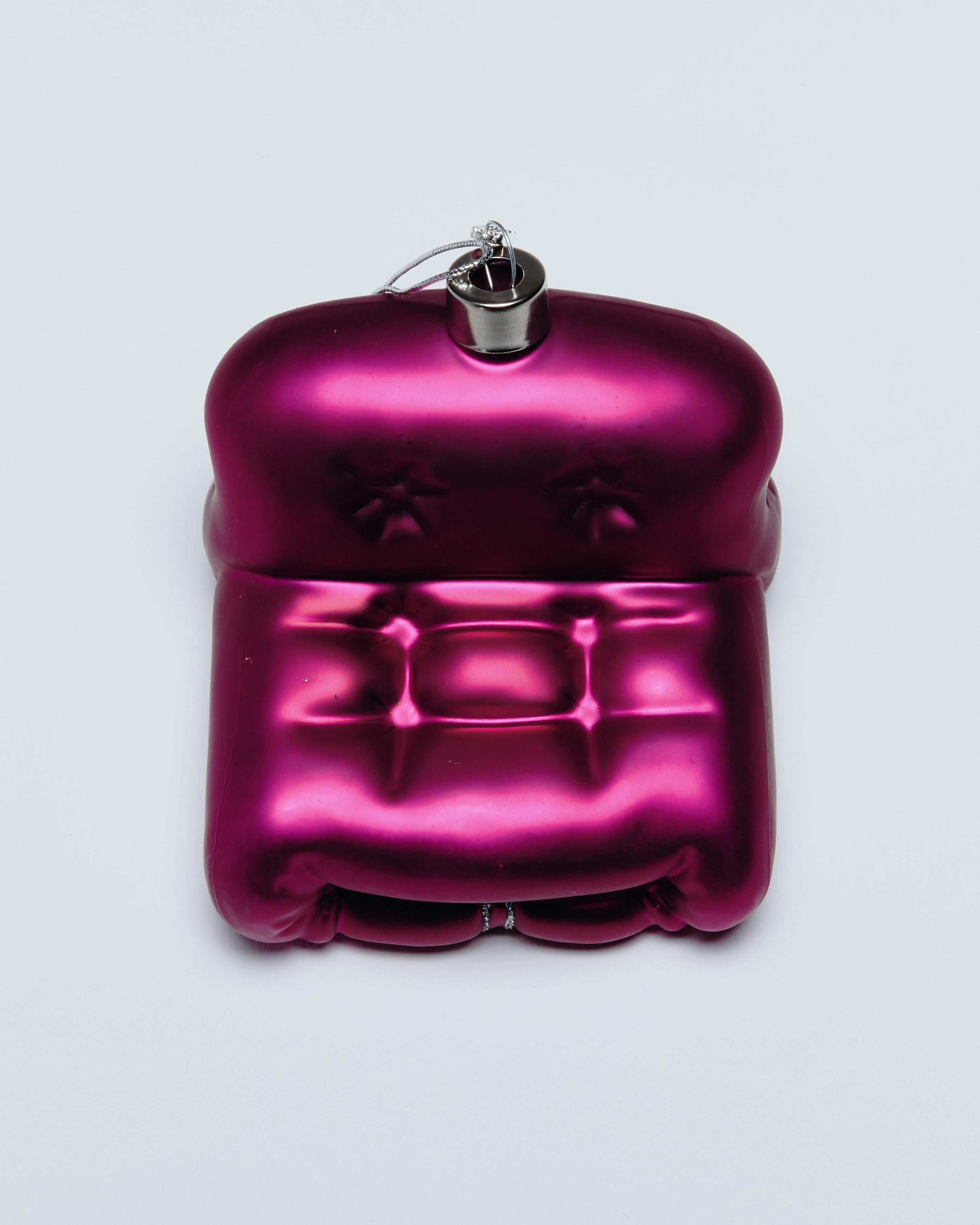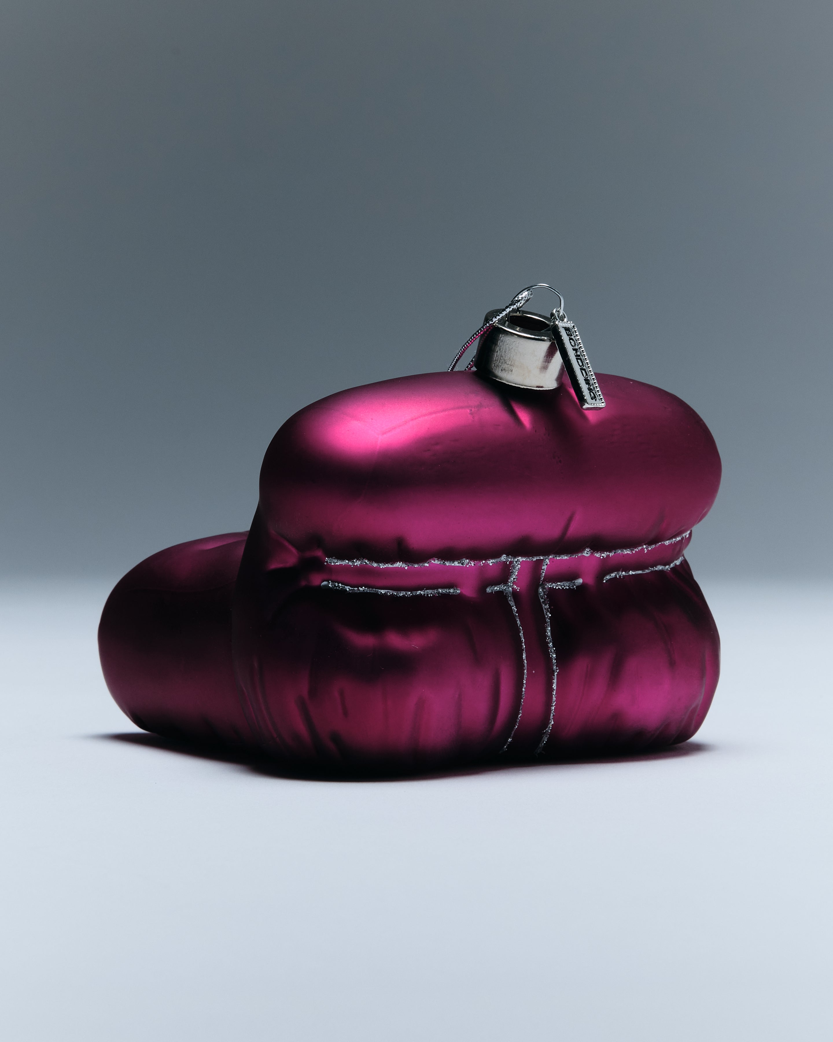 Celebrating an iconic chair through affection, BONDDING’s Restraint ornament captures the tension between softness and structure. Formed from a hand-sculpted wax mold and made of hand-blown glass, each ornament is individually hand-painted and finished with BONDDING’s silver tag and minimalist cap